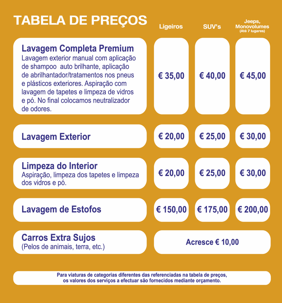 Temos à sua disposição uma lavagem completa ou lavagem de exterior.